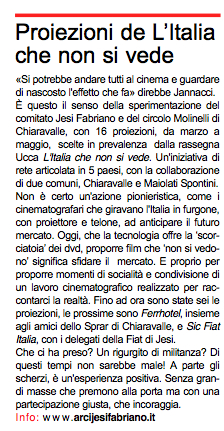 L’ITALIA CHE NON SI VEDE, rassegna itinerante di cinema del reale promossa da Ucca – Unione di Circoli cinematografici dell’ARCI.
