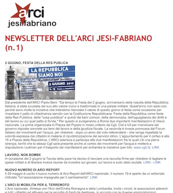 Chi non ha già ricevuto la nuova newsletter dell’Arci Jesi-Fabriano ed è interessato ad iscriversi, può mandare una email all’indirizzo arci.jesi.fabriano@gmail.com con soggetto “Iscrizione newsletter”.
