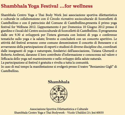 Il Centro Yoha Shambhala, il Centro ricreativo socioculturale diScorcelletti e l’Arci jesi-fabriano ti invitano allo “Shambhala Yoga Festival”