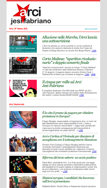Iscriviti per ricevere la newsletter settimanale di Arci Jesi-Fabriano nella tua casella mail, e rimanere aggiornato su notizie, iniziative, eventi ed attività dell’Arci sia locali che nazionali.