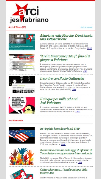 Iscriviti per ricevere la newsletter settimanale di Arci Jesi-Fabriano nella tua casella mail, e rimanere aggiornato su notizie, iniziative, eventi ed attività dell’Arci sia locali che nazionali.