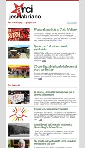 È uscita Arci JF News (99) – 27 giugno 2014, la newsletter numero 99 di Arci Jesi-Fabriano con i prossimi eventi Arci in zona e le notizie dall’Arci nazionale.