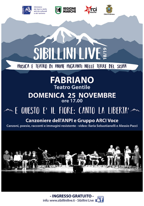 Lo spettacolo, organizzato con la collaborazione del Comune di Fabriano, fa parte della rassegna “Sibillini Live 2018: musiche e teatro nelle terre del sisma” organizzata da ARCI Marche con un contributo di Regione Marche e Mibac.